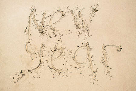 Inscription New year on sand. Nature background
