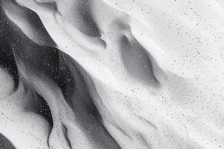 Abstract pattern of dark and light sand dunes with shimmering particles, creating a textured, natural design.