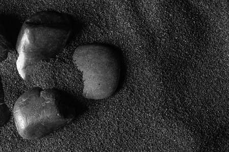 Black stone on a black sand dunes background. Black design.