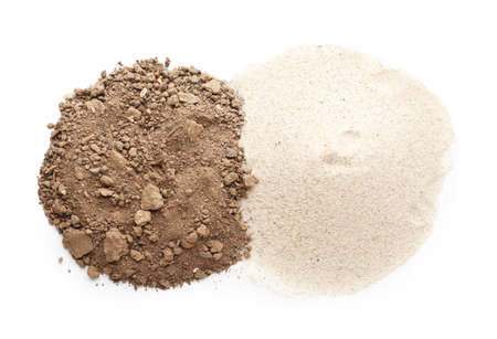 Heaps of different soils on white background