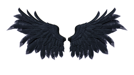 3d Illustration Crow wing, Demon Wings, Black Wing Plumage Isolated on Black Background