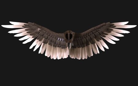 3d Illustration Sphinx Wings, Black Wing Plumage Isolated on Dark Background