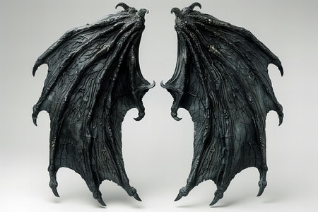 3d rendering of two black dragon wings isolated on white background.
