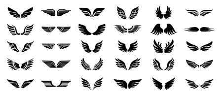 Explore these stunning black and white wing illustrations, perfect for various creative design projects. Ideal for art, graphic design, and more.
