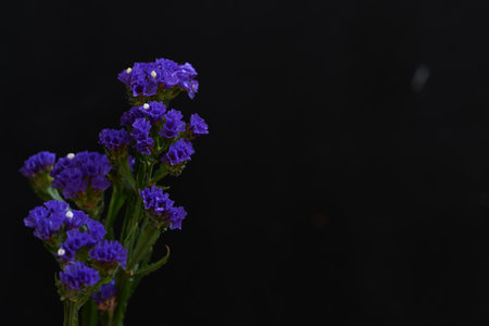 Condolence card template with red lily on black background with empty space for text. Luxury funeral services business card mockup design. Memorial day banner with copy space. Lux flower shop concept.