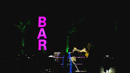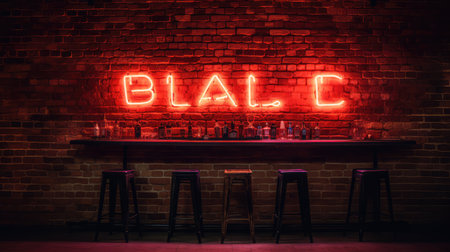 A glowing bar neon sign illuminates a sleek wall, exuding a lively, dynamic vibe perfect for bar themed content