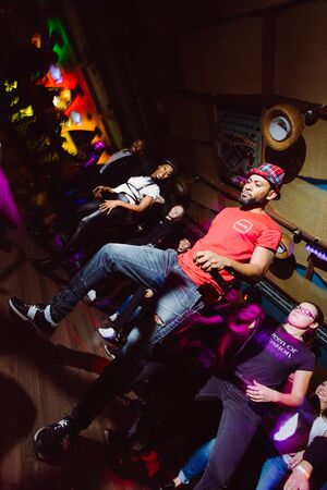 MOSCOW, RUSSIAN FEDERATION - OCTOBER 13, 2018: Cuban dance teachers conduct a master class in salsa and reggaeton in the night club Tiki bar.