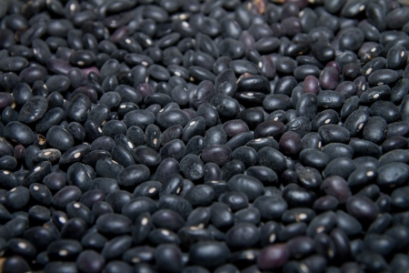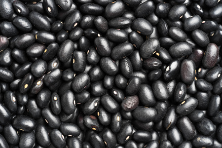 Dry organic black bean seeds background, for healthy food ingredient or agricultural product concept