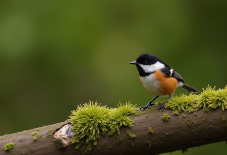 AI Generated. Profile of a Small Bird with Orange Breast and Dark Head