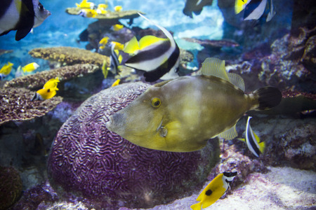Tropical triggerfish in aquarium (Balistidae)