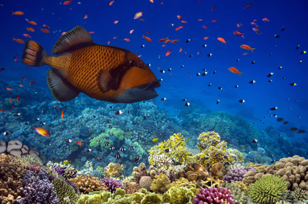 giant triggerfish in the red sea during dive