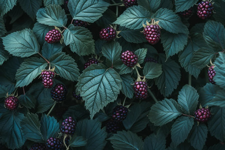 Beautiful organic background of freshly picked blackberry created with Generative AI technology