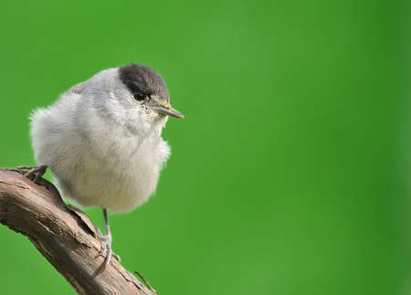 Blackcap, Sylvia atricapilla on a green blackground