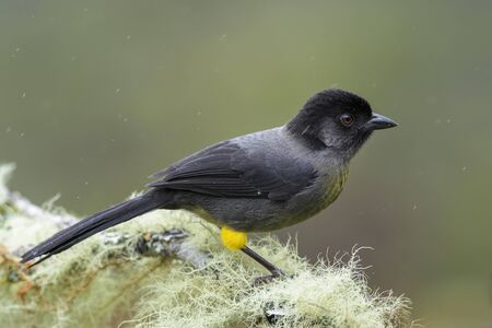 Yellow-thighed Sparrow - Pselliophorus tibialis; interesting black perching bird from Central America forests, Costa Rica.