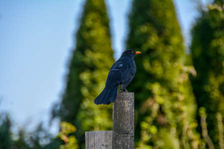 common blackbird (turdus merula) on a fence