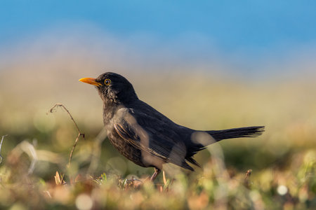 Blackbird (Turdus merula) on the meadow
