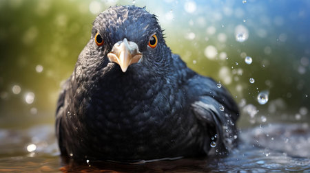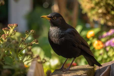 A blackbird in the garden that keeps order created with generative AI technology