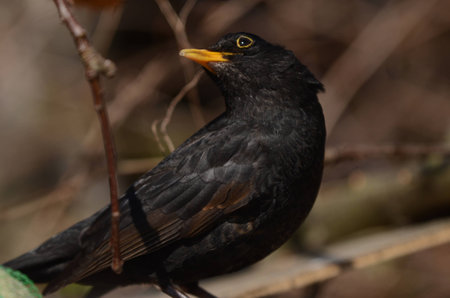 Blackbird (Turdus merula, male) in the springtime close up