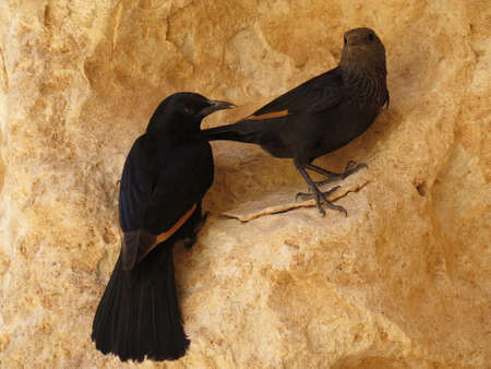 Pair of Tristram's starling birds in the Israeli desert