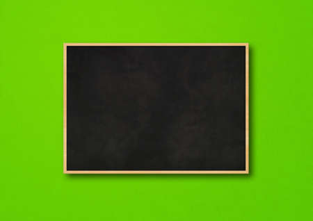 Traditional black board isolated on a green background. Blank horizontal mockup template