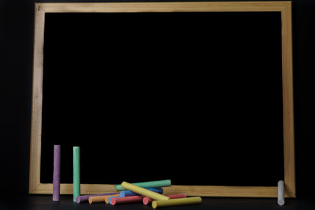 Blank blackboard, copy space for text, advertising business, education concept, school class, empty background for a message, colorful chalk
