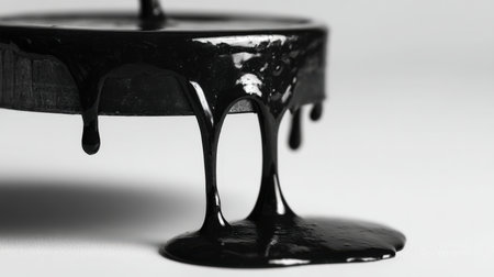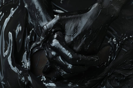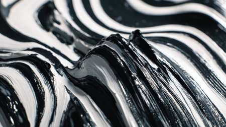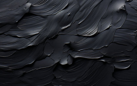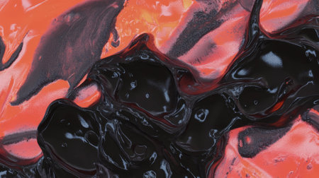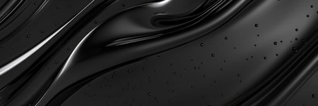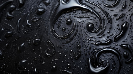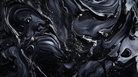 This image presents a smooth and glossy black substance that showcases distinctive textures and intricate patterns. The artwork creates a dynamic visual experience, highlighting the interplay of light and shadow, perfect for various creative projects.