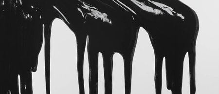 Dramatic flow of black paint creating dynamic patterns against a white background. ideal for modern art projects and graphic design elements, bold contrasts and fluidity in motion. Generative AI