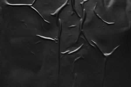 black crumpled and creased plastic poster texture background