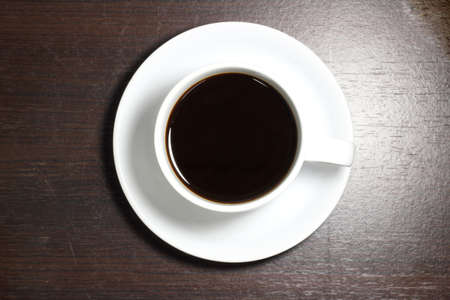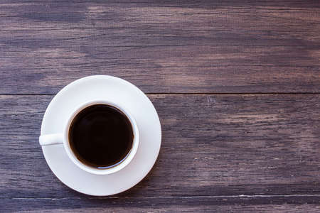 Coffee cup on wood table with copy space.