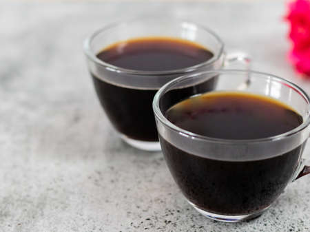 Close up shot of black coffee cups with copy space