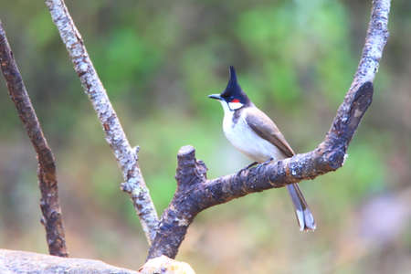Red-whiskered bulbul (Pycnonotus jocosus), or crested bulbul bird perched in a tropical forest