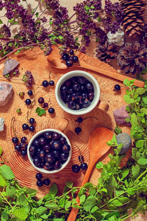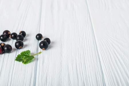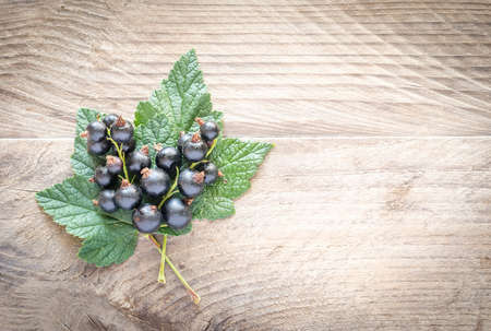 natural antioxidant fresh organic currant on a wooden background, space for text
