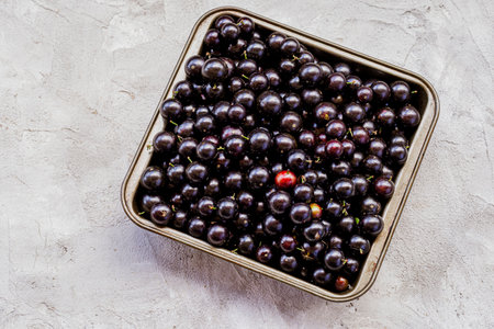 Fresh Jabuticaba Berries in a Metal Tray on Concrete Background