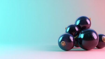 A visually appealing arrangement of fresh blackcurrants with a glossy texture set against a soft gradient background, perfect for fruit and healthy lifestyle concepts.