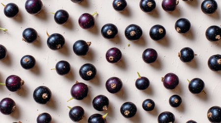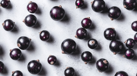 This image features fresh black currants artfully arranged on a light surface, highlighting their rich color and natural texture, ideal for culinary inspiration.