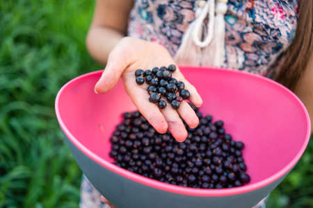 Black currant close-up. Fresh harvest of berries, macro photo. Concept of organic healthy healthy vitamin food.