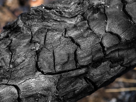 Close up of burnt log after fire