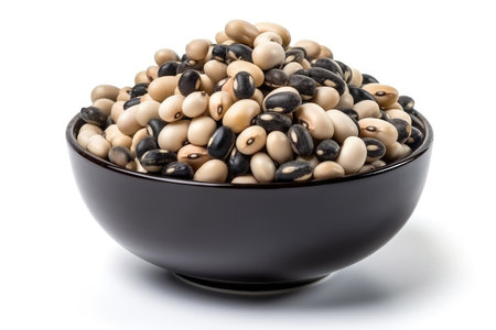 Beans of a cowpea, Vigna unguiculata, with a white background