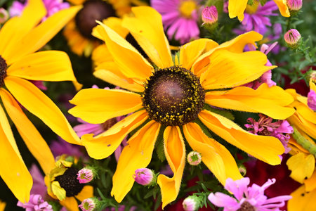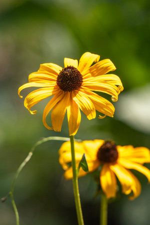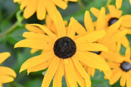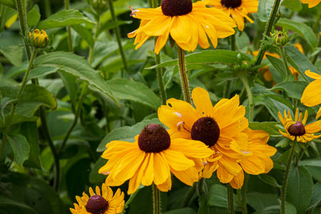 Yellow Rudbeckia flowers in a garden during summer