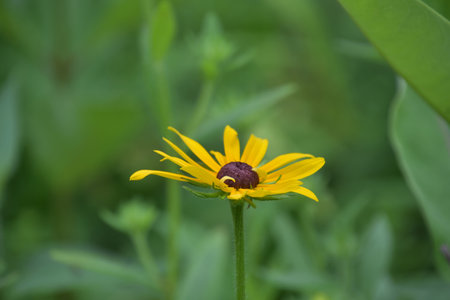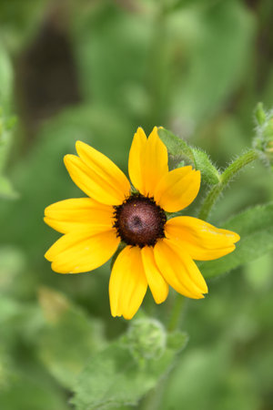 Very pretty delicate black eyed Susan flower blossom blooming in a garden.