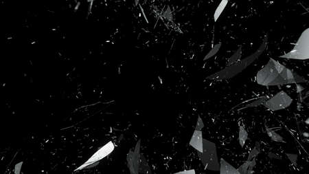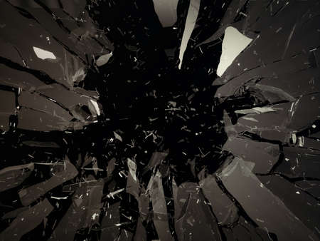 Shattered Glass Close-up on Black Background - Abstract Broken Pieces and Sharp Edges