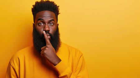 Young man with Afro hairstyle closing eyes, enjoying a moment of peace and calm against an orange background