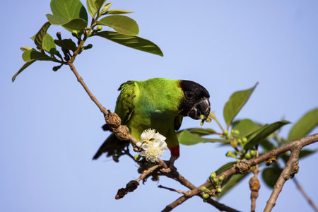 Black-hooded parakeet on a branch, eating, Pantanal, Brazil