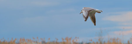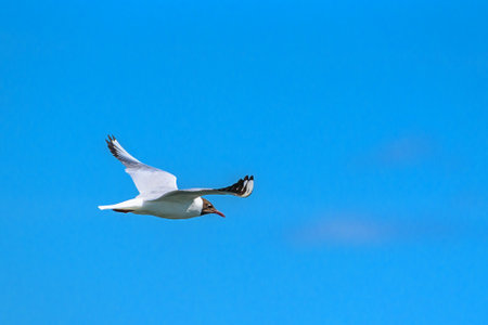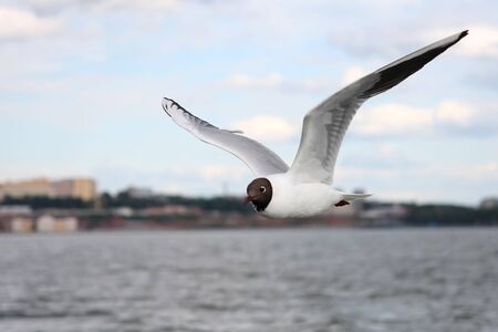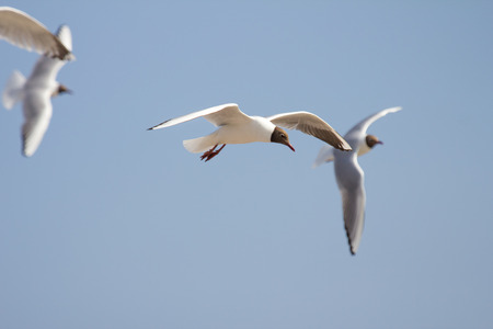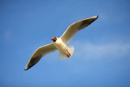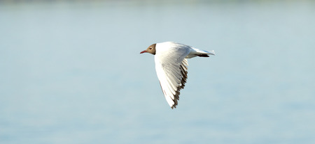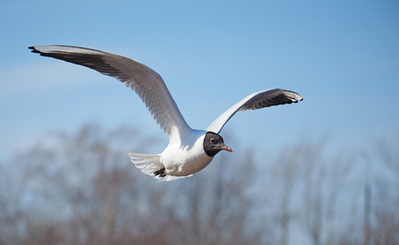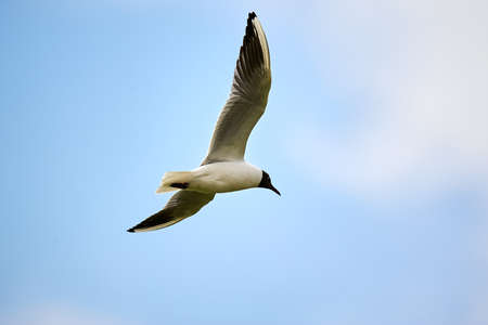 Black-headed Gull (Larus ridibundus) in flght on the sky background