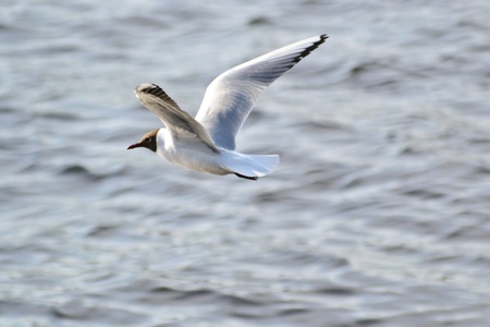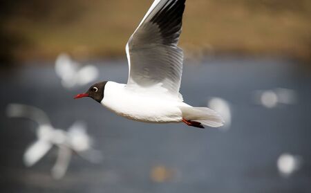 A Black headed Gull on flying.(Larus ridibundus)
