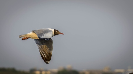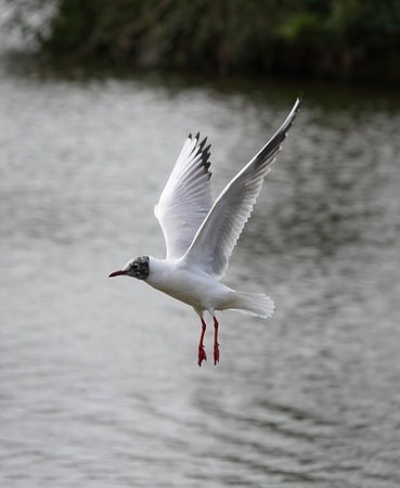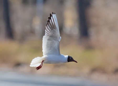 Black headed gull soaring in a park