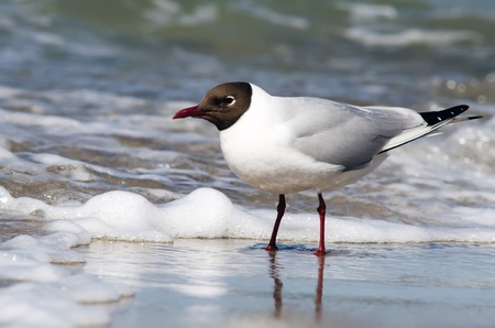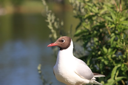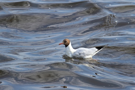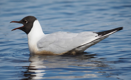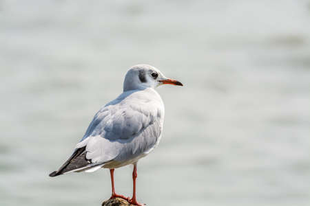 A beautiful black-headed gull on sea