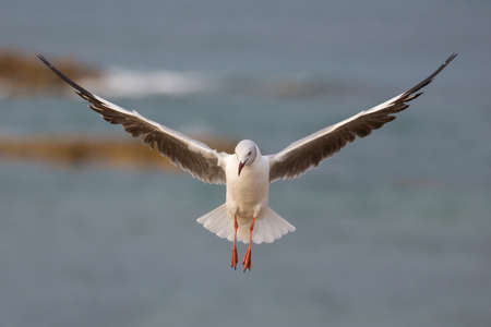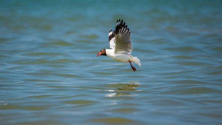 Beautiful Grey Headed Seagull with wings outstreched on the ocean breeze