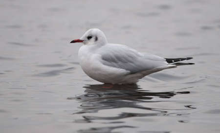 Larus ridibundus The lake seagull shakes on waves