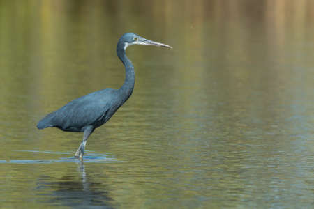 A Western Reef Heron (Egretta gularis) standing in shallow water